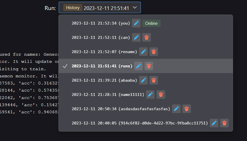 Neetbox knows each time your project runs. Neetbox provides Tensorboard like viewing strateg. You can specific name of a run or select which run to view in frontend.